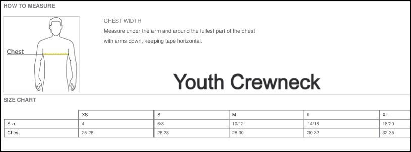 Youth sizes are distinguished by 'YS, YM, YL, YXL' OR 'Youth Small, Youth Medium, ETC.'